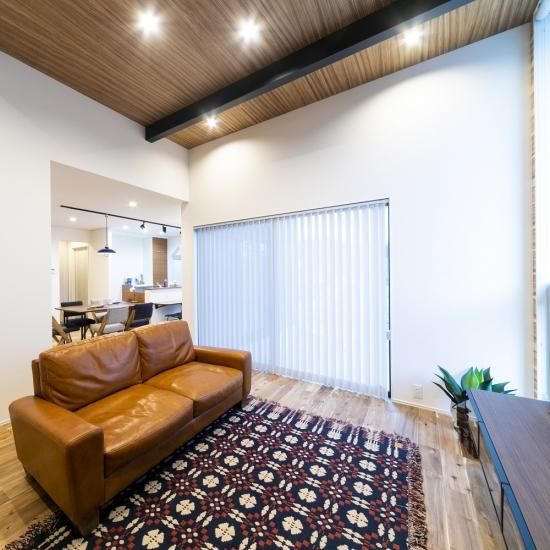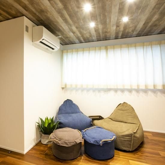 板張りの壁や天井。ゆったりと贅沢な気分で