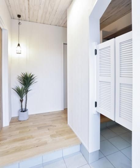 玄関のホワイトのウエスタン扉もアクセント。