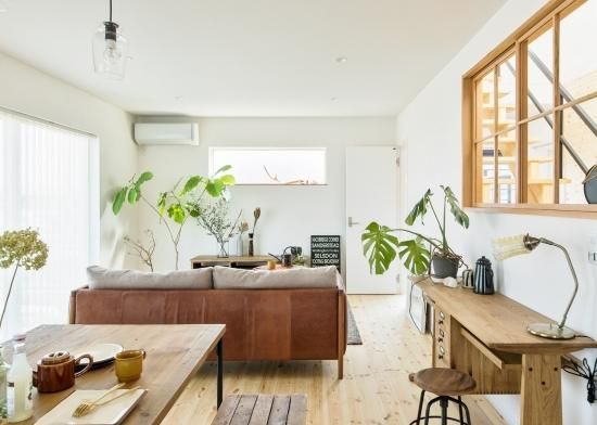 LDKの壁は自然素材の塗り壁で仕上げたことで