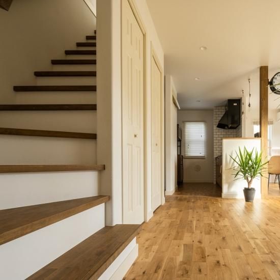 ナラの無垢床仕上げ。