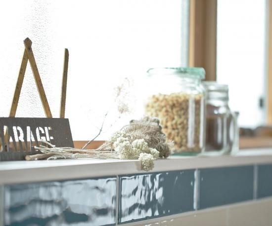 本物のタイルと本物の木の質感が素敵です。