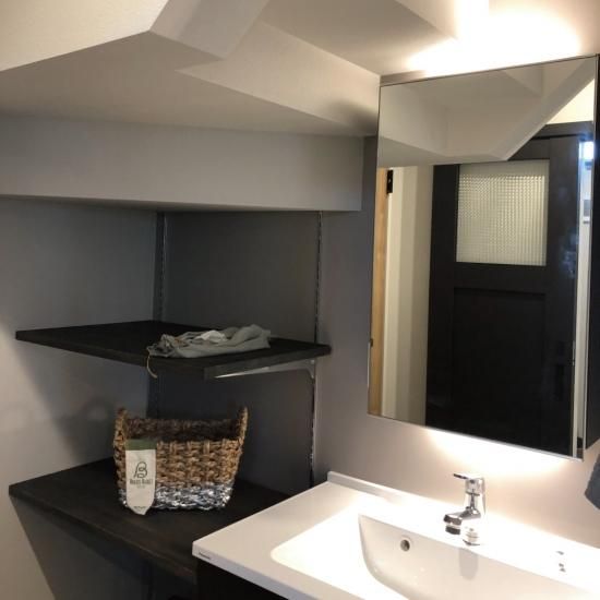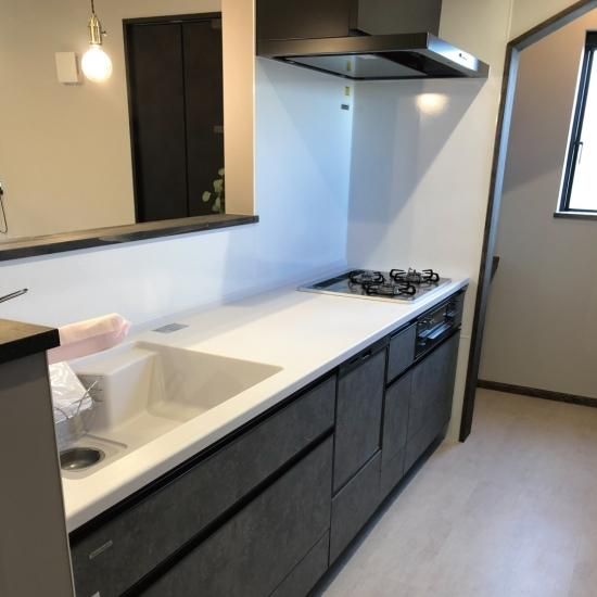 モルタル調の素材とサブウェイタイルを合わせたキッチンは