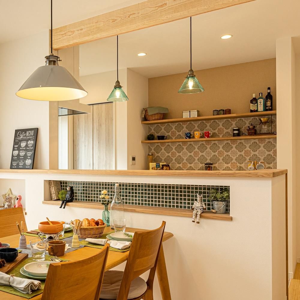木々と彩り豊かなタイルやクロスが生み出す素敵な空間は