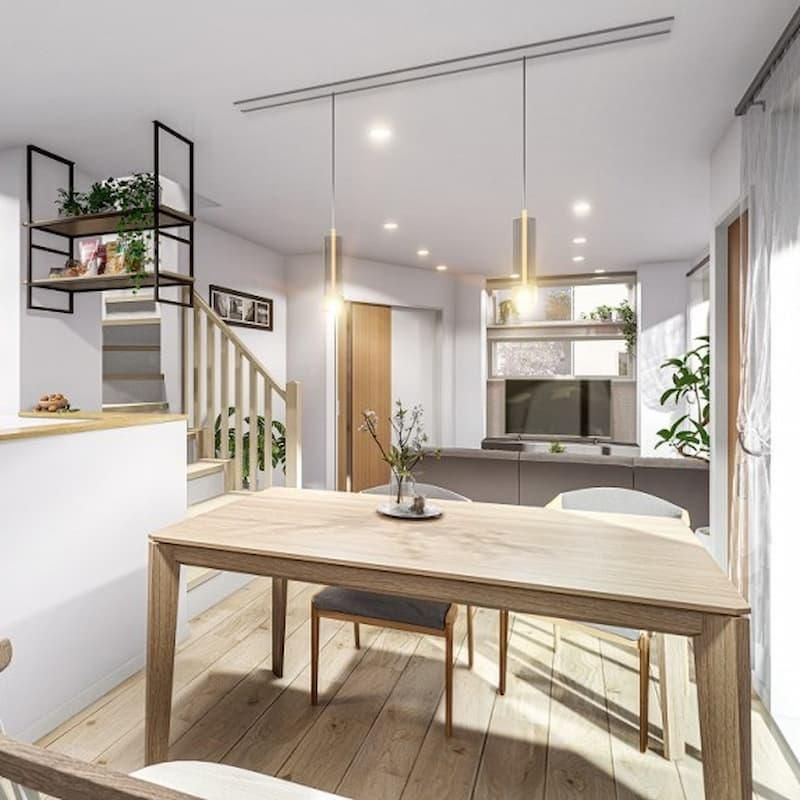 真っ白の外壁に無機質な赤錆がアクセントとなる