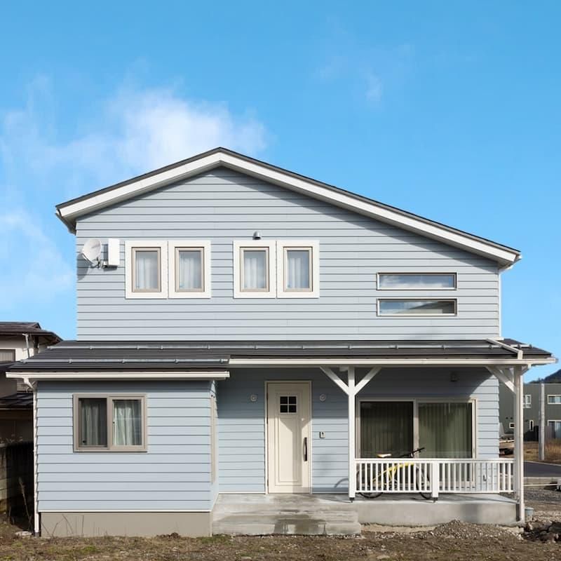 鮮やかなブルーが映えるカリフォルニアスタイルの家