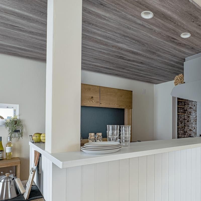 大容量パントリーは天井を下げることにより、