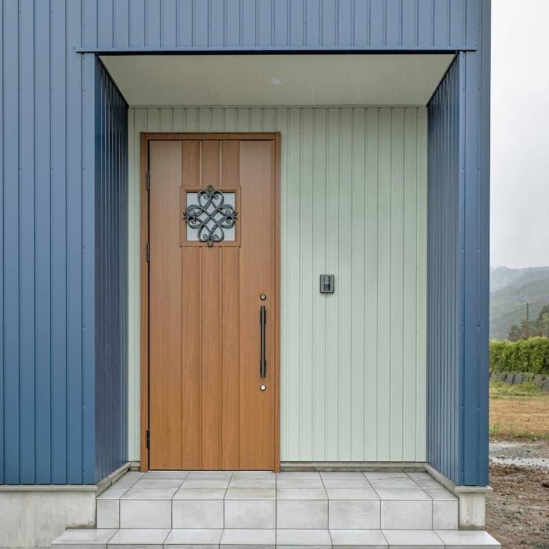 「自転車を飾れるモルタル玄関がある家」