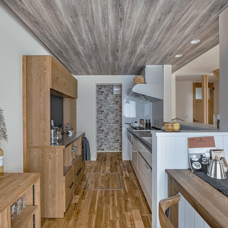 キッチン背面にオリジナル造作カウンターと