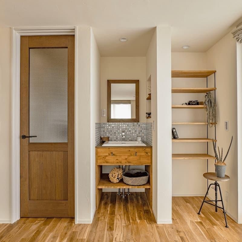 リビングに隣接させた洗面台は
