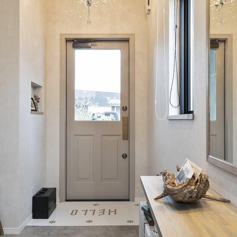 床にはHELLOのモザイクタイルでオシャレ度アップ。