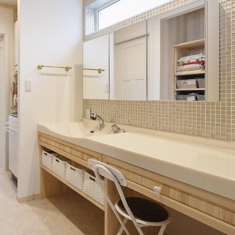 シルバーのガラスタイルで明るい雰囲気を作ったことで