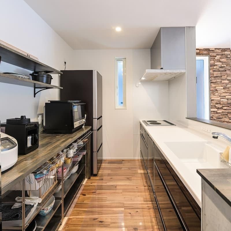 キッチンの腰壁はモールテックス仕上げで