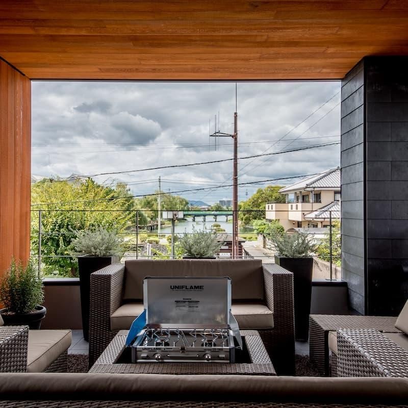 大きなバルコニーはとても開放感があり、