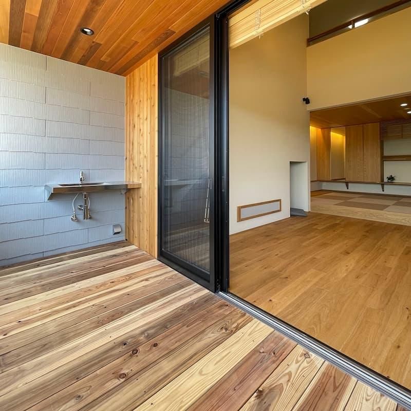 寛げるインナーデッキテラスのある家。