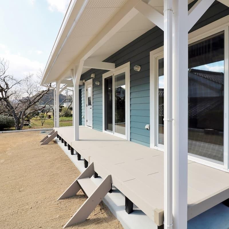 外観はブルーグレーのラップサイディングに