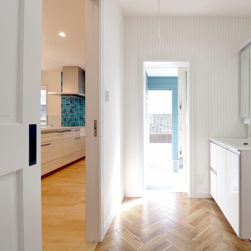 アクセントウォールにはブルーを、