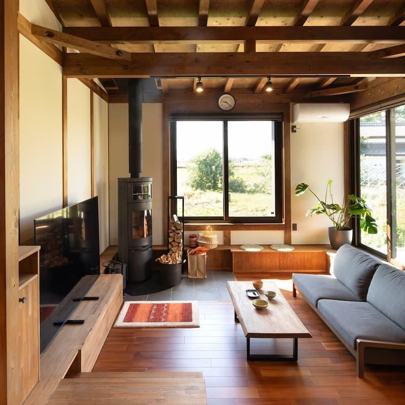 無垢材と薪ストーブの炎に癒される