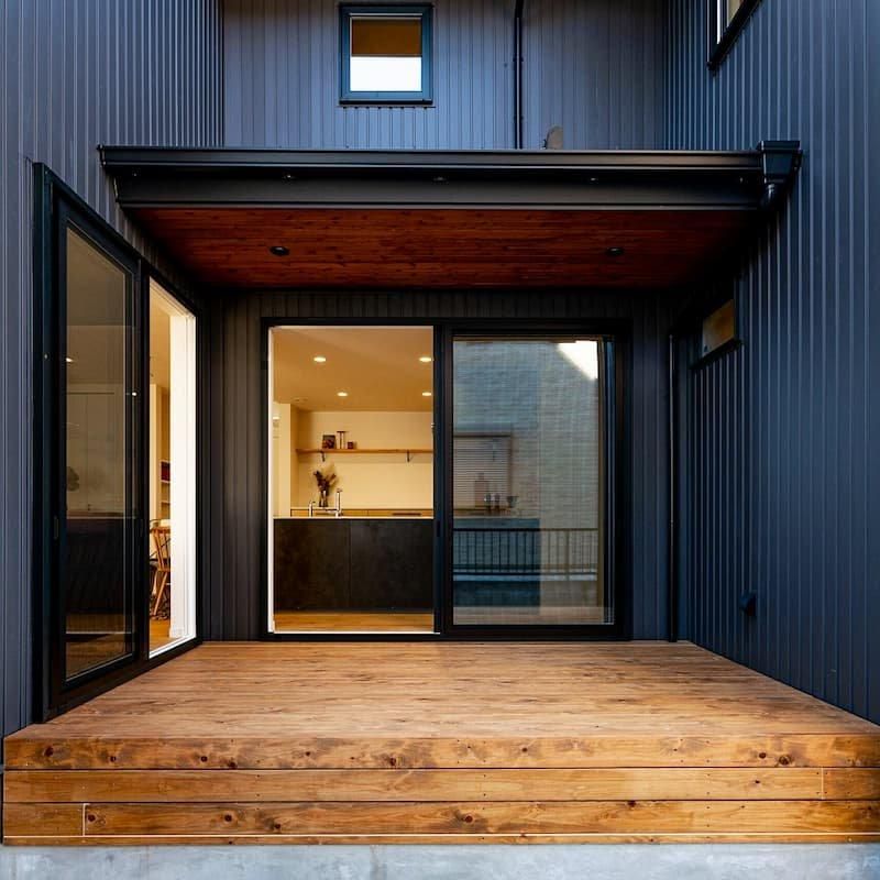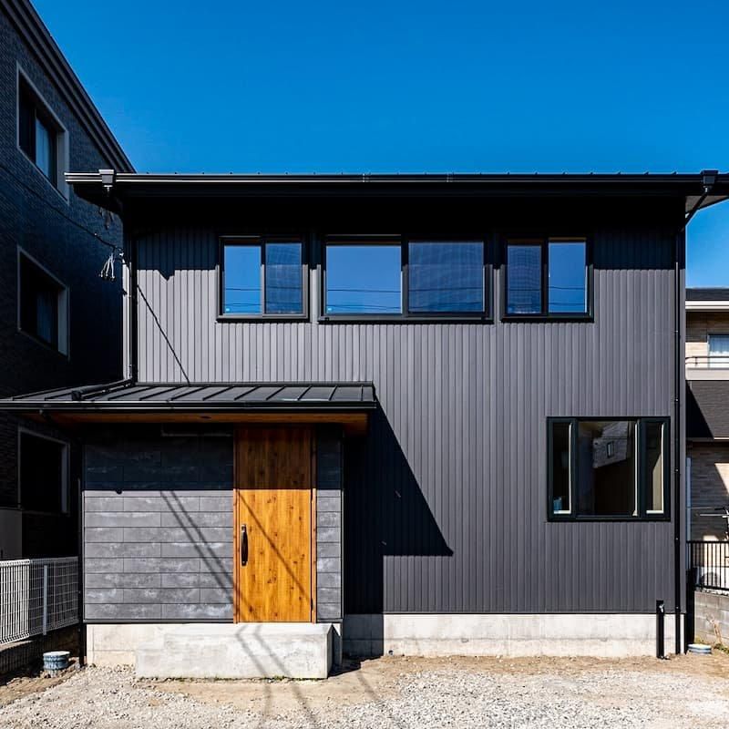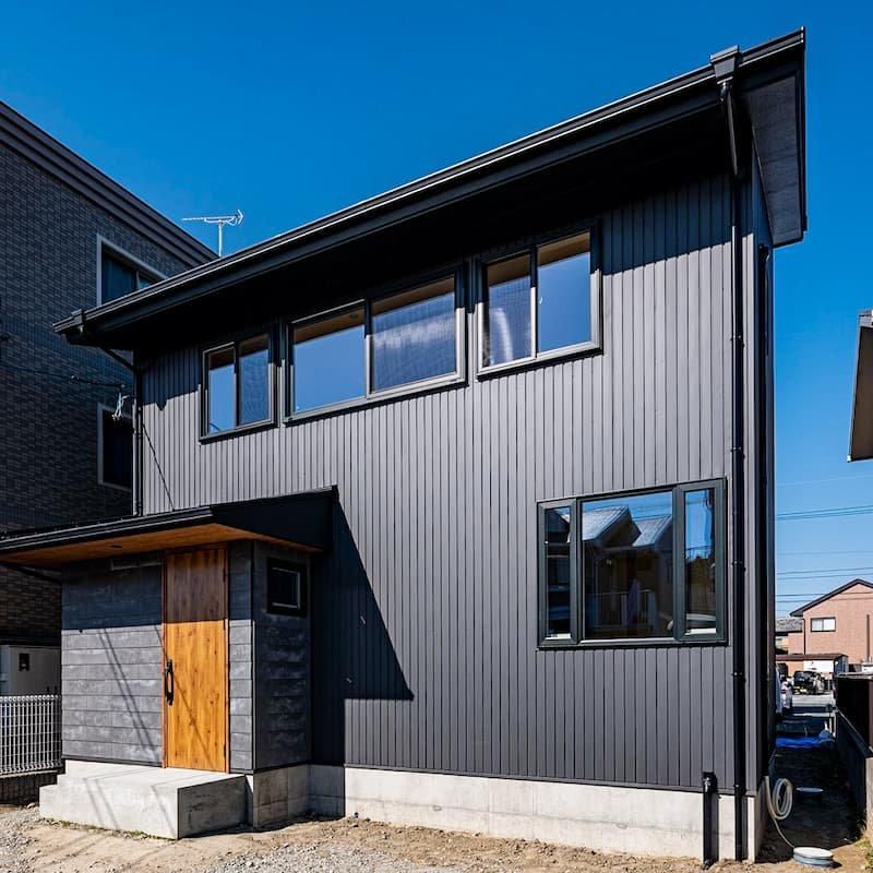 ブラックの外観がシャープで存在感のある家。