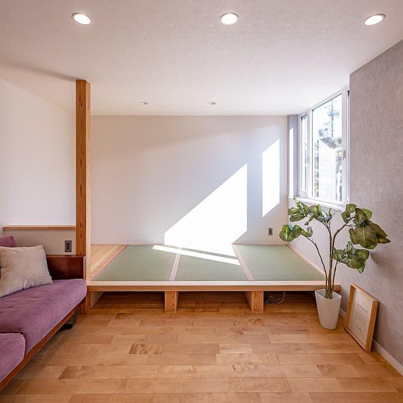 畳コーナーには子供たちの衣類を収納できるように
