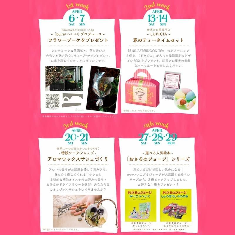 フラワーブーケ・絵本・ティーセットのプレゼント、