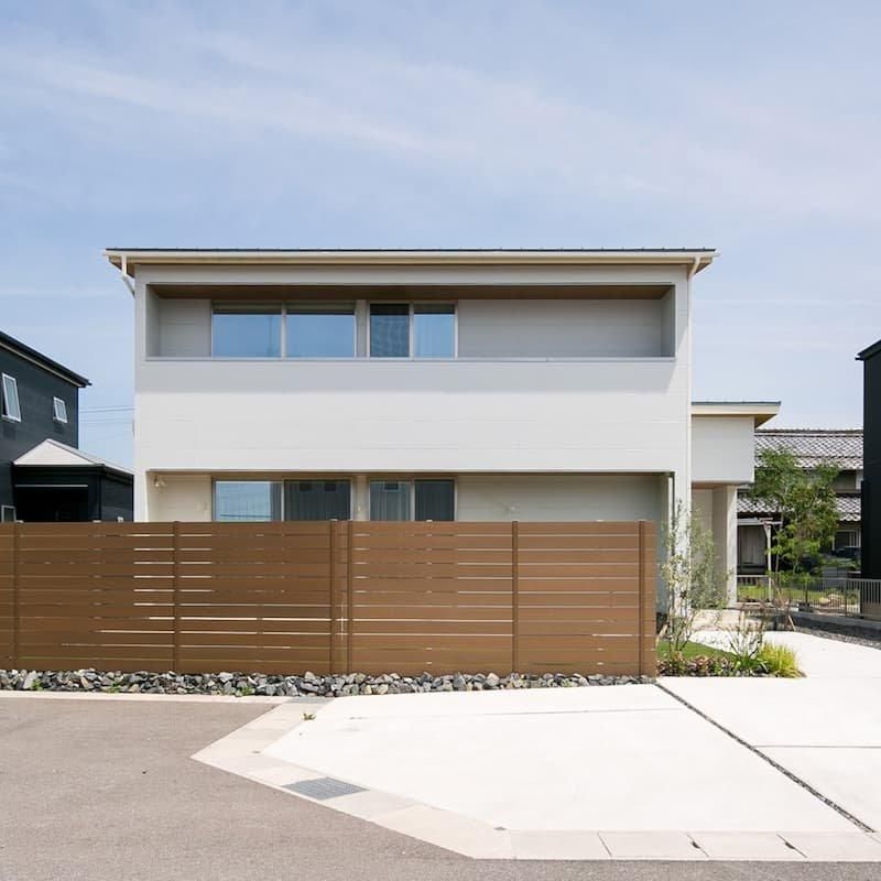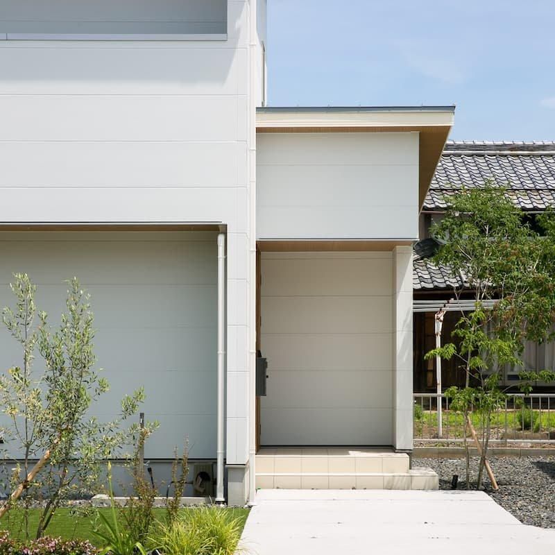 外壁に明るい白を採用したシンプル綺麗な軒のある家。