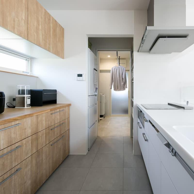 キッチン→パントリー→洗面へとつながる