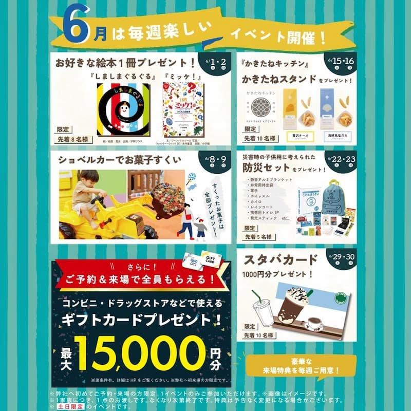 絵本・おかき・防災セット・スタバカードのプレゼント、