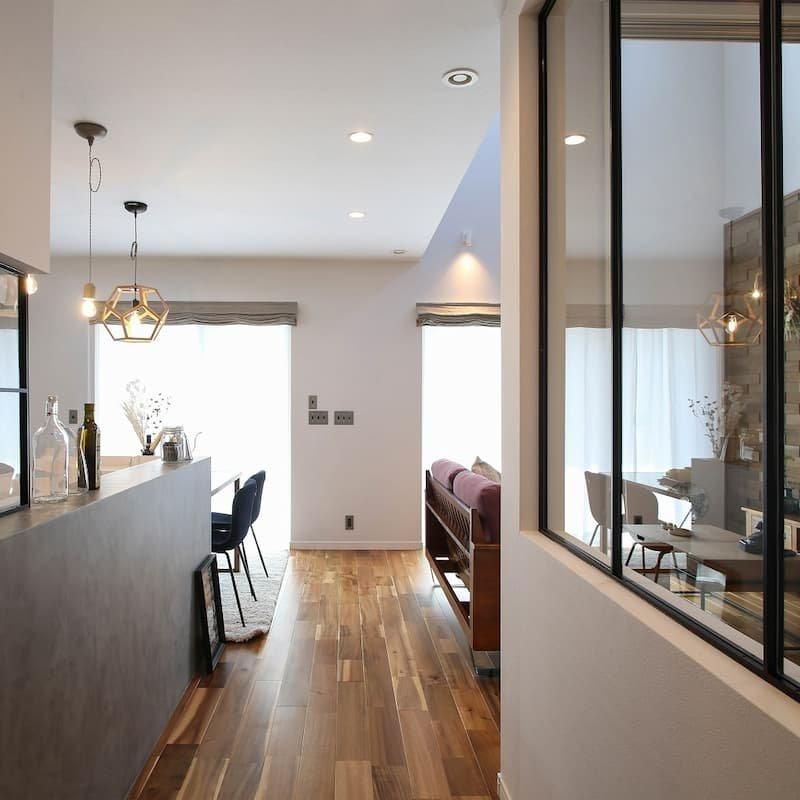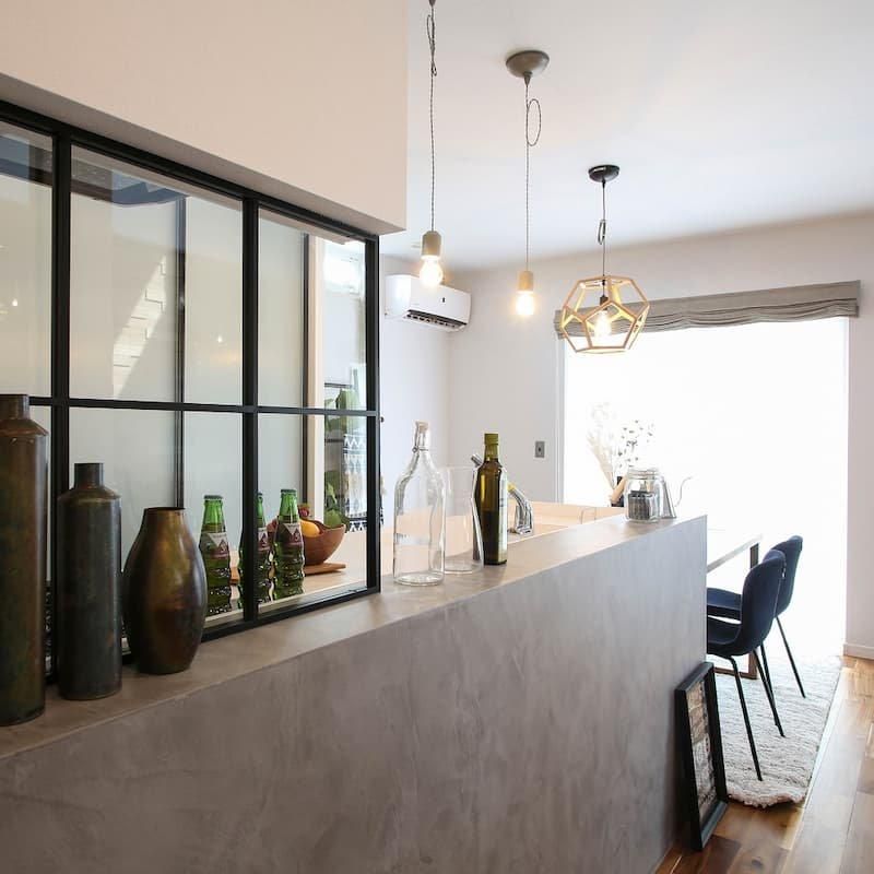アイアンガラスウォールの組み合わせのキッチンが