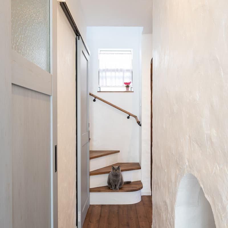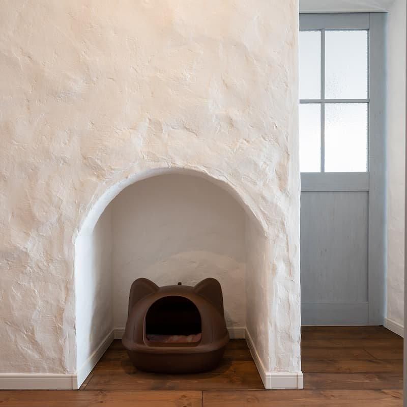 ボコボコと凹凸に仕上げた漆喰壁の一部に