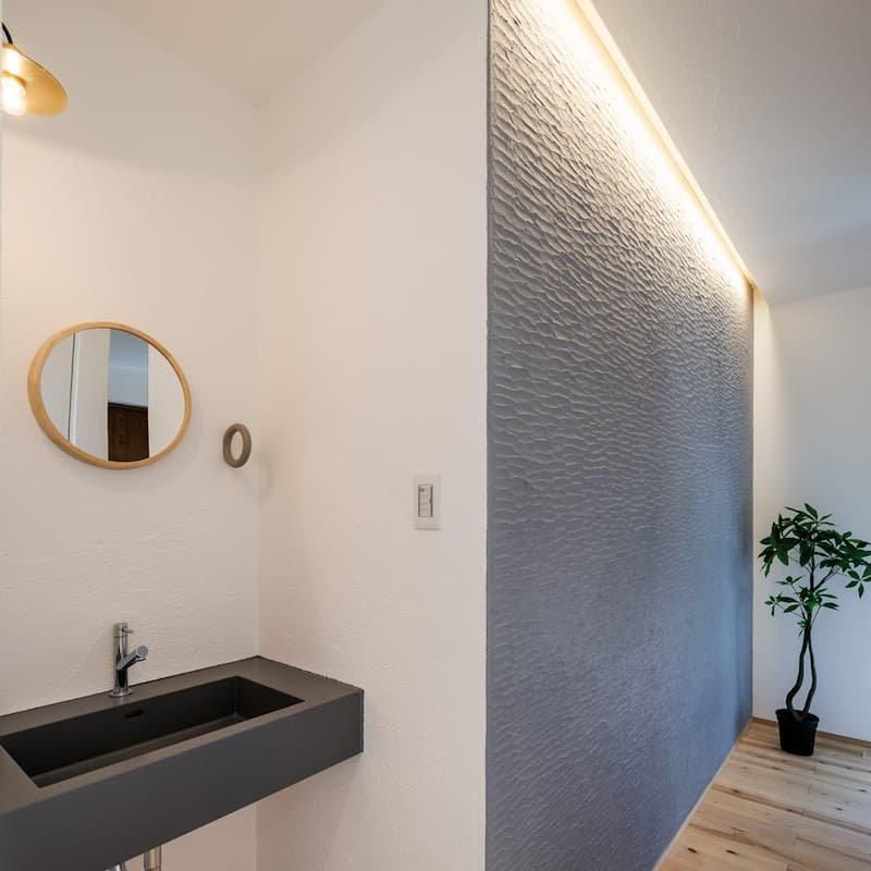 漆喰と無垢材に包まれた気持ちのいい空間には