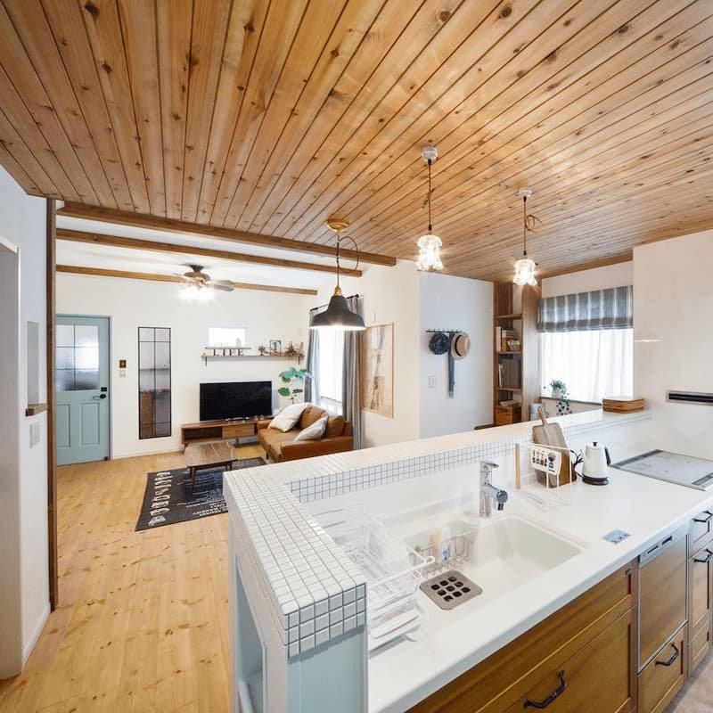 板張り天井や無垢の床材、漆喰の壁材など、