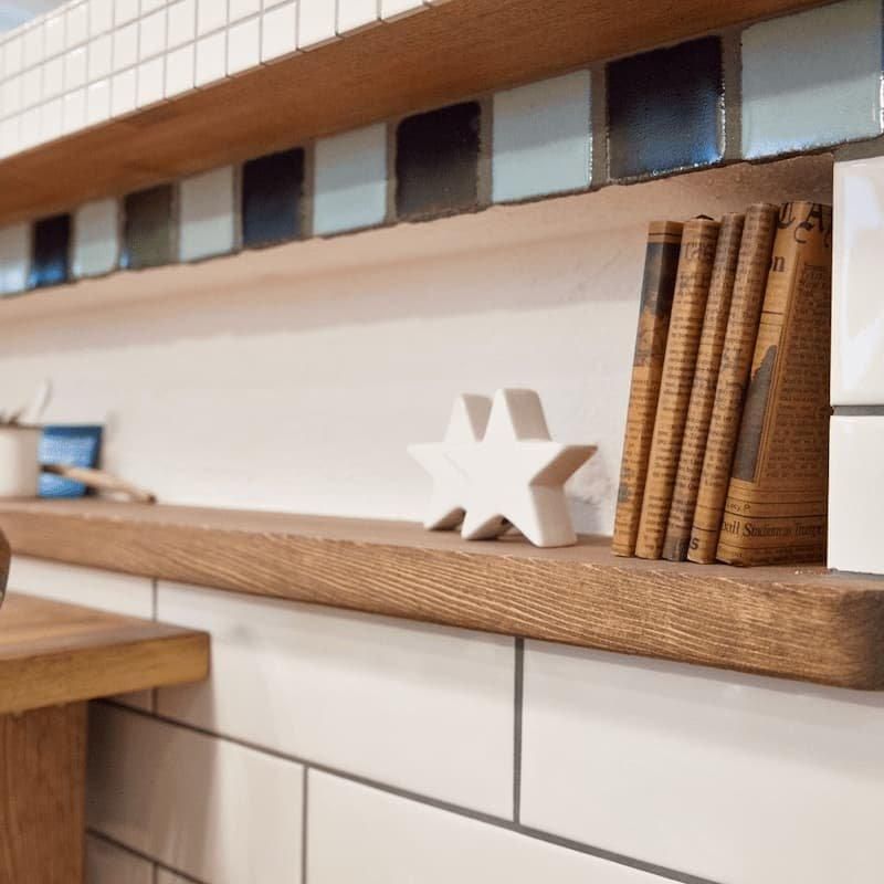 階段横のシェルフにたくさん本を並べれば