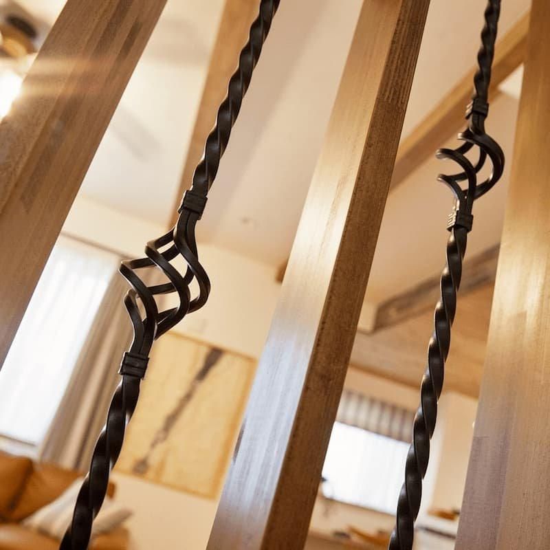 アイアンや古材、レザーなどの素材を使い、