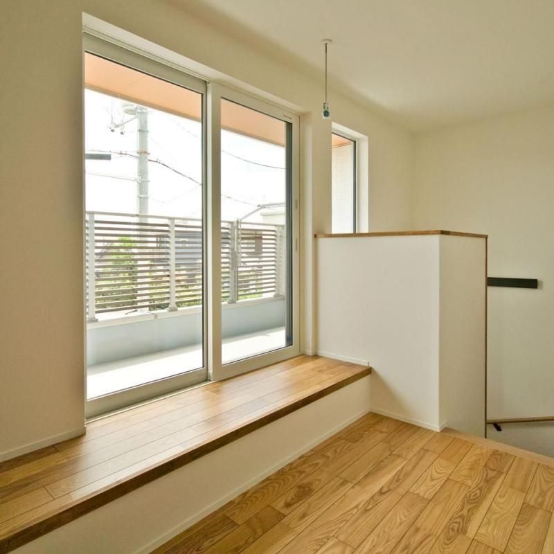2階廊下の腰掛けではバルコニーで遊ぶ