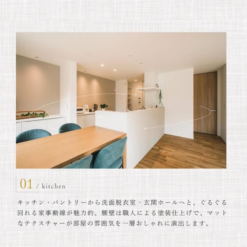 キッチン・パントリーから洗面脱衣室・玄関ホールへと、