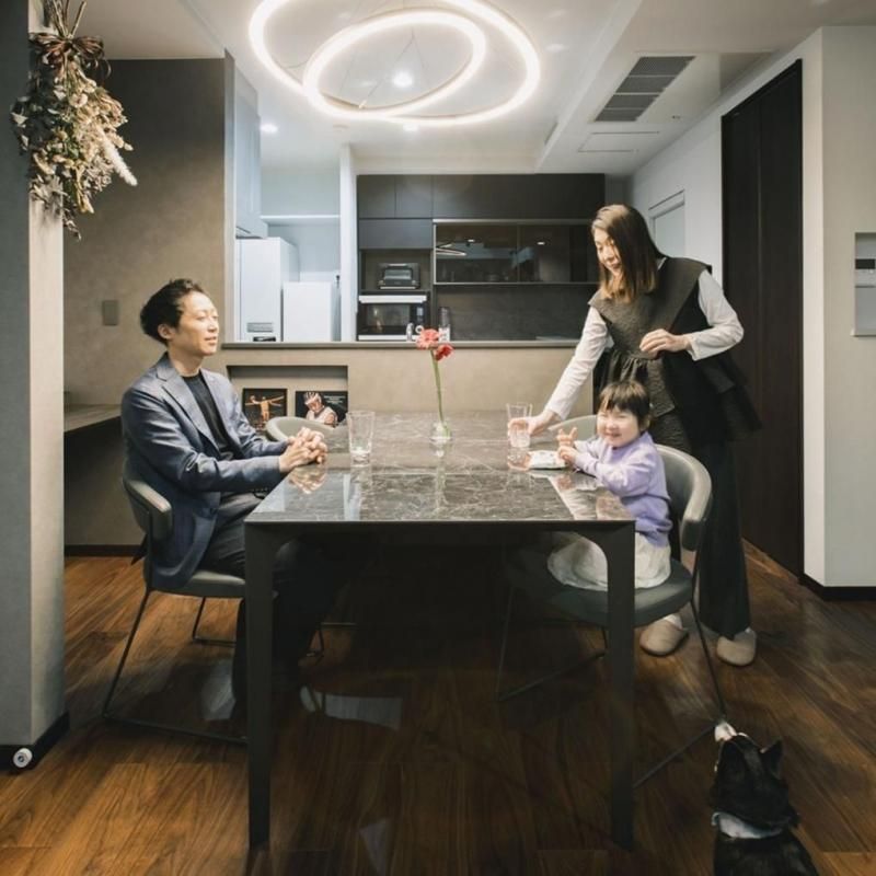 吹抜けからこぼれる光が、空間にやわらかさと広がりを。