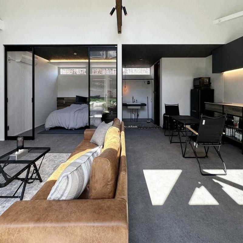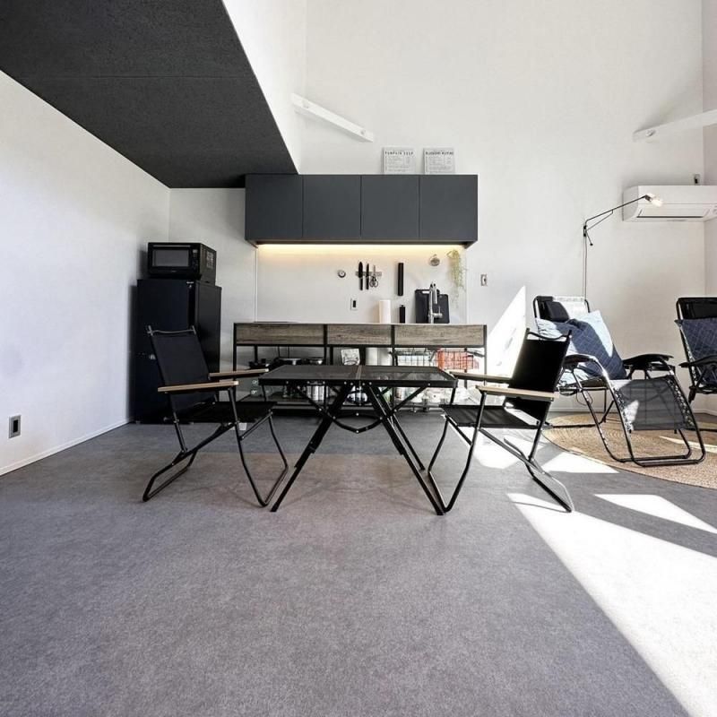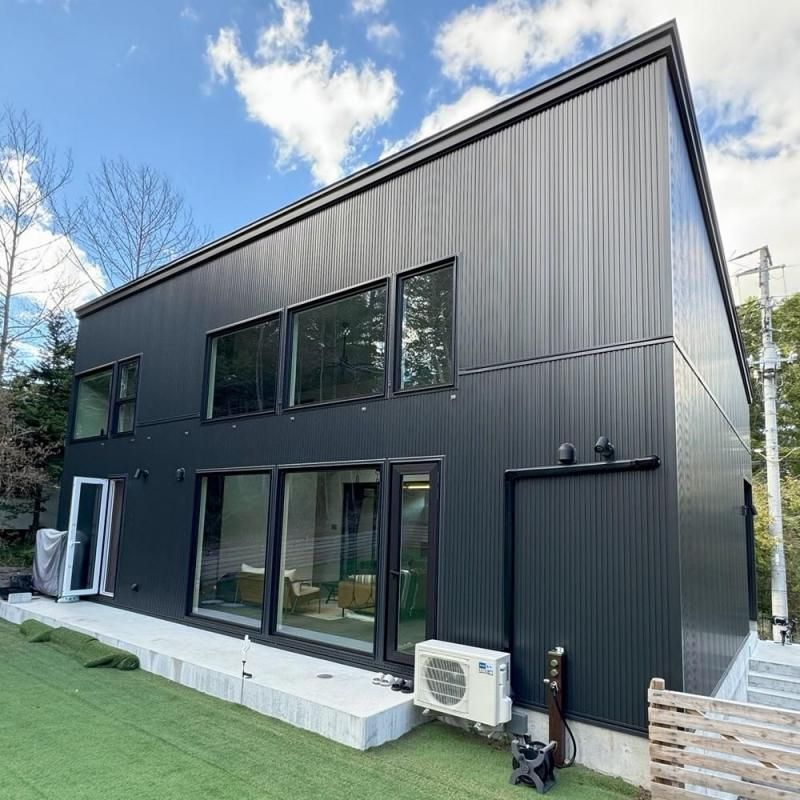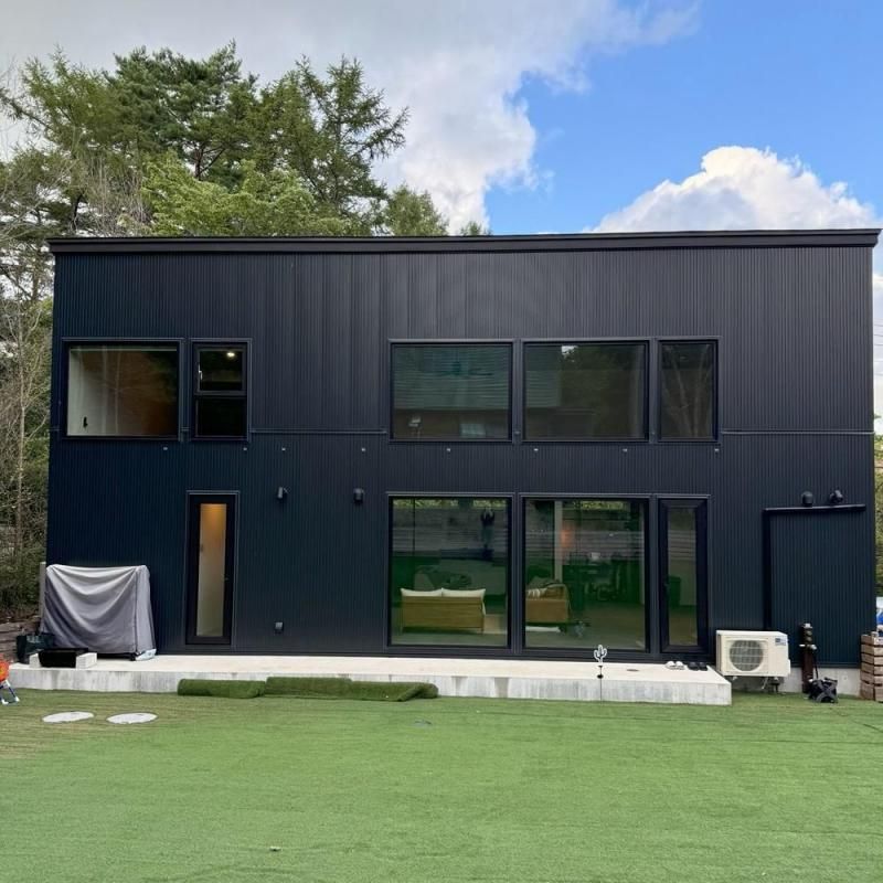 天井高5mの大空間と大開口窓の組み合わせにより、