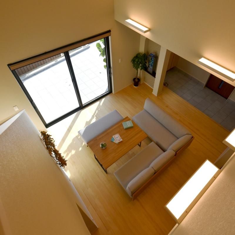 吹き抜けのリビングスペースは開放感抜群。