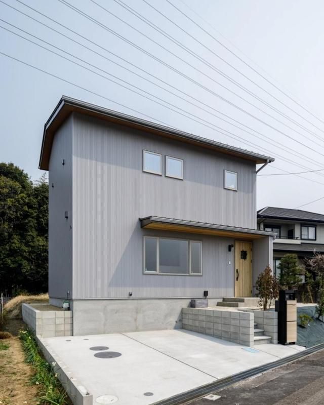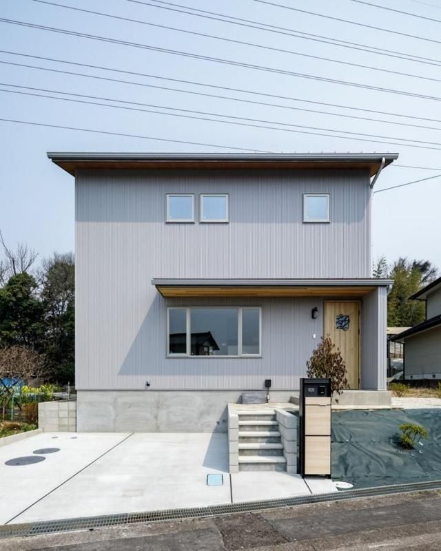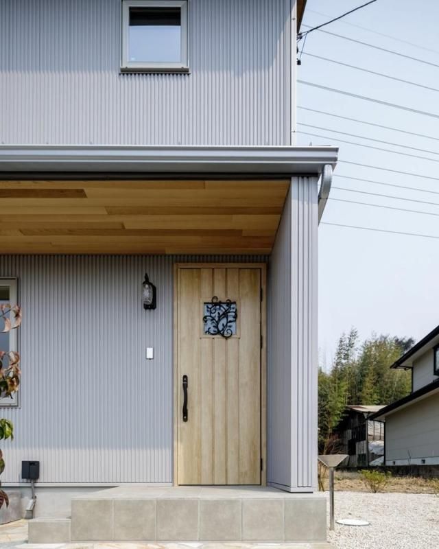外壁や玄関ドア、軒天にガルバリウム鋼板を使用し、
