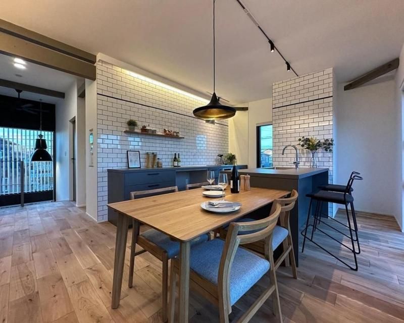 贅沢に一面サブウェイタイルを使用し、