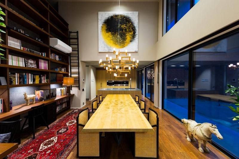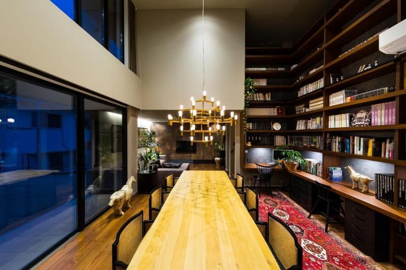 高さ約5mの大きな本棚を中心に設計された