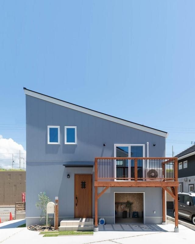 シャープな片流れ屋根が印象的な