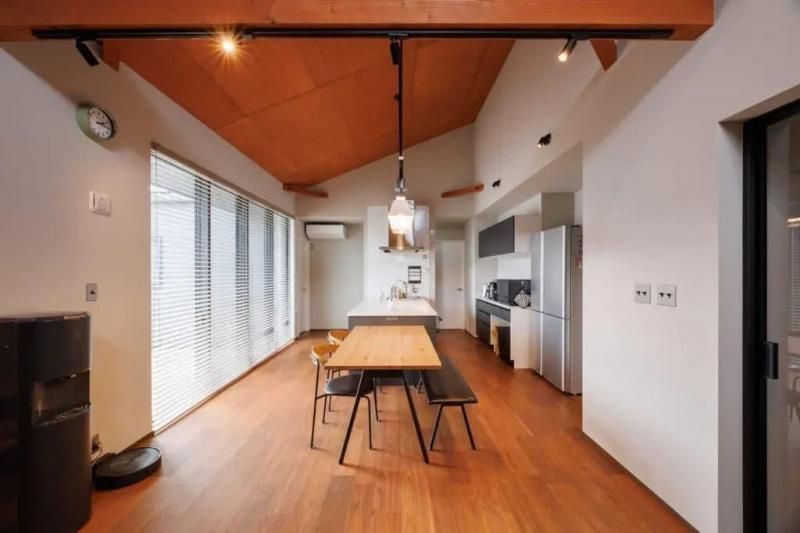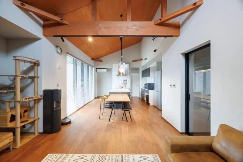 勾配天井を採用し、一番高いところは約4mあります。