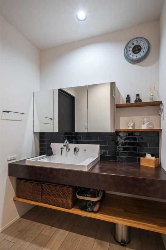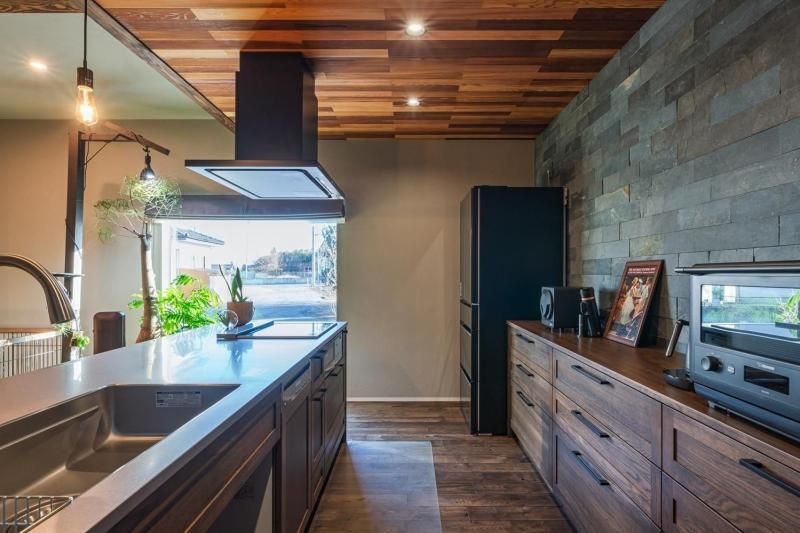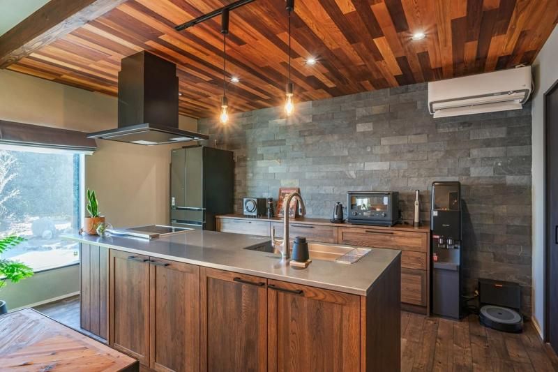 内観のデザインはダーク系のカラーと木を楽しむ