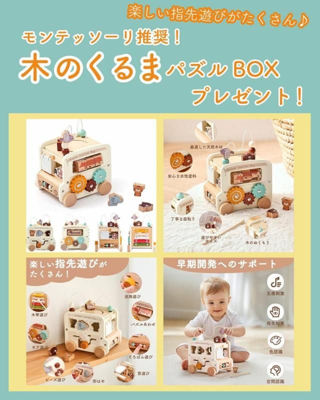 モンテッソーリ「木のくるまパズルBOX」がもらえる!