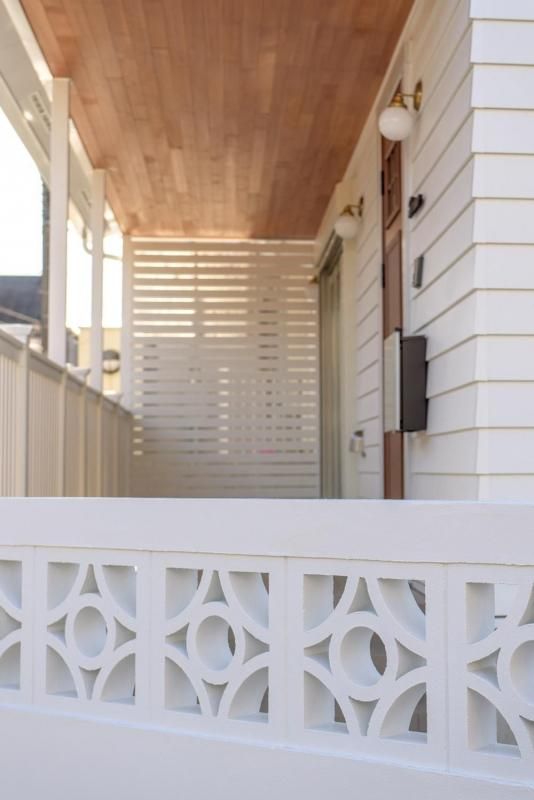 玄関前のフェンスは、背の高いバリューフェンスを採用し、