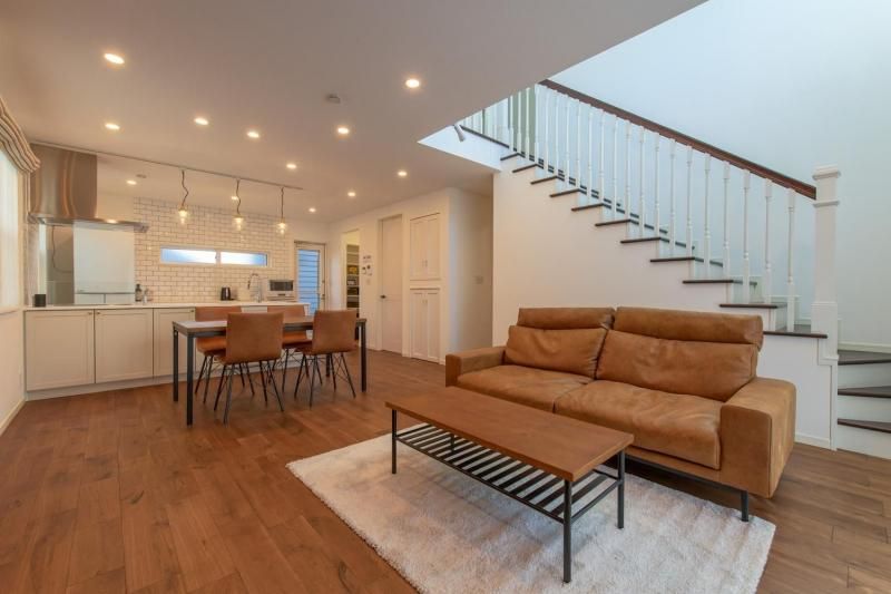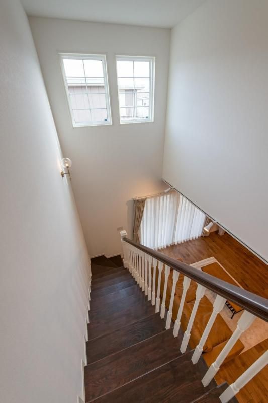 またリビングと2階を繋げる、L.J.スミスの輸入階段は、