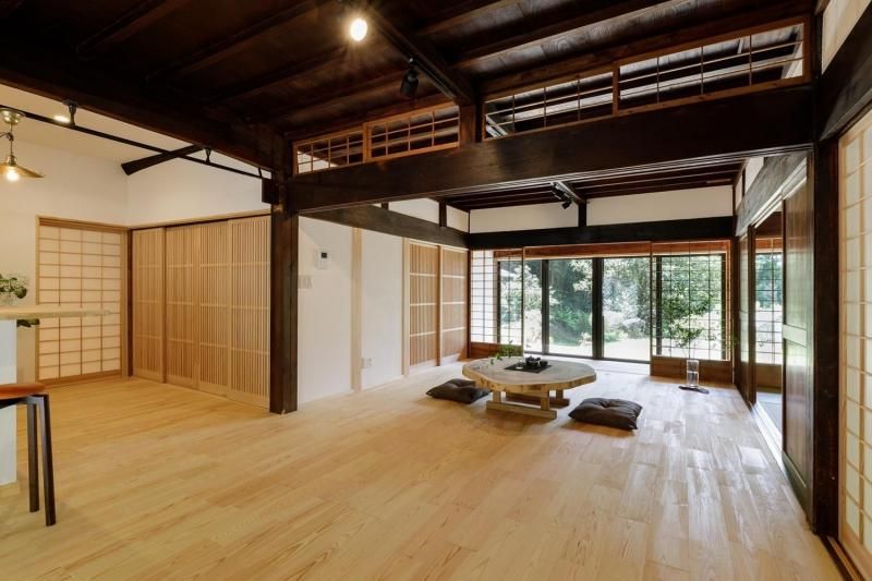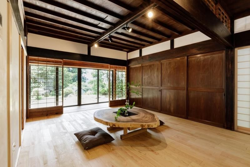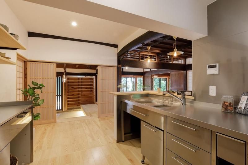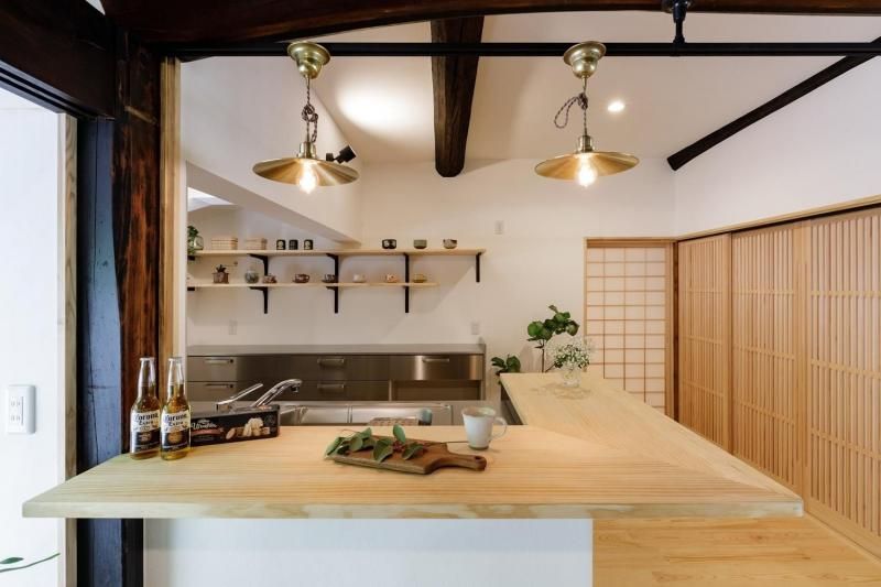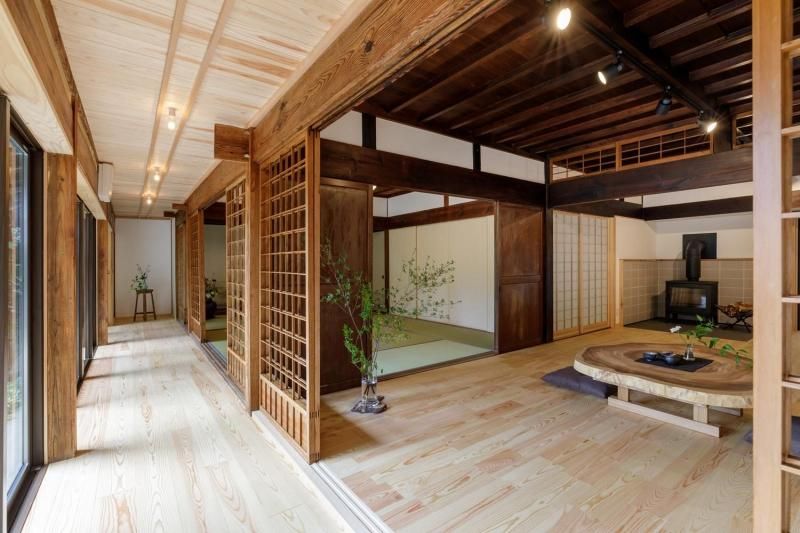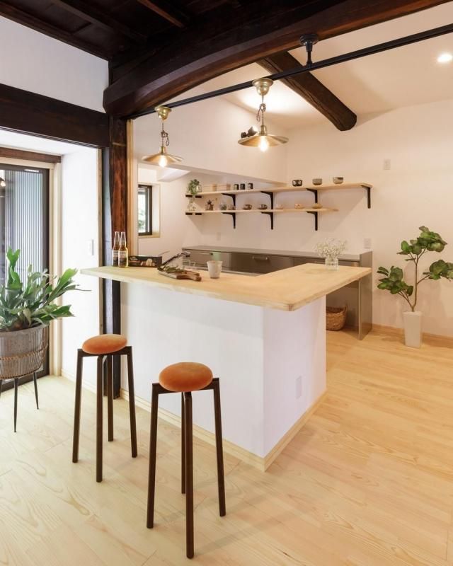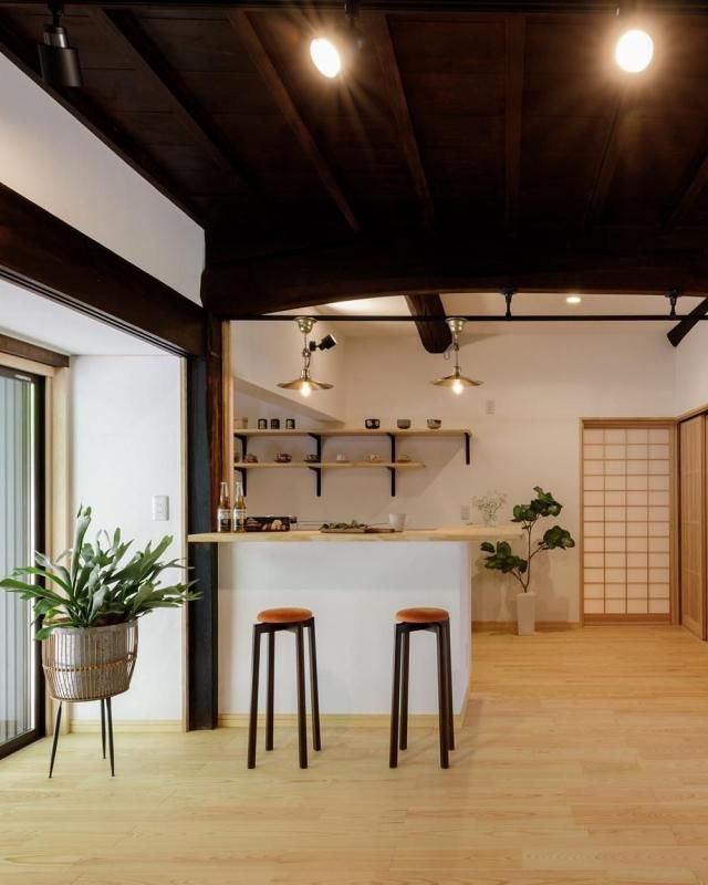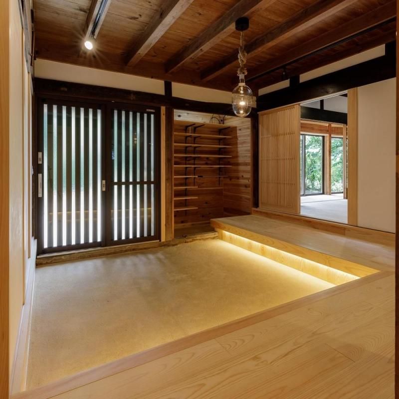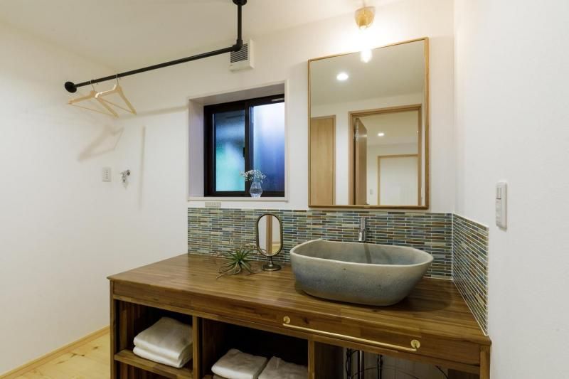 壁はウッドチップの入った再生紙壁紙で仕上げたり。