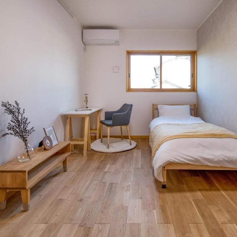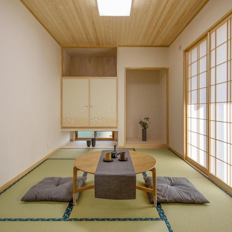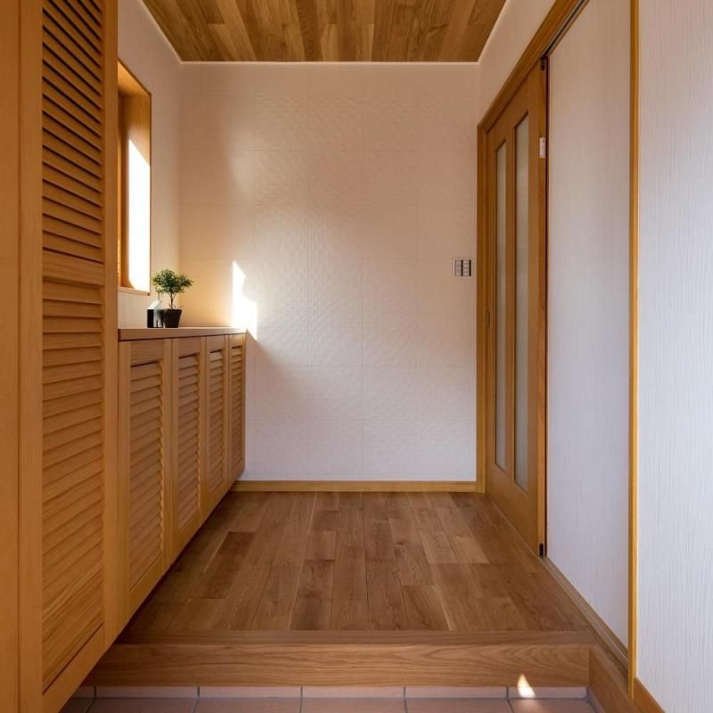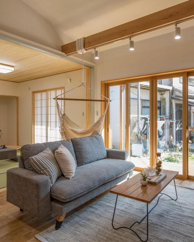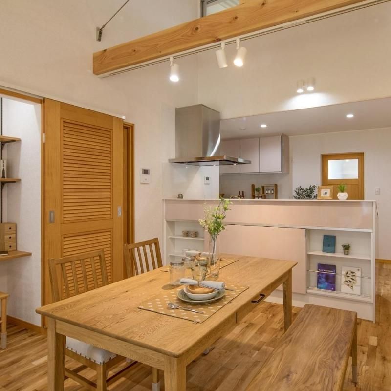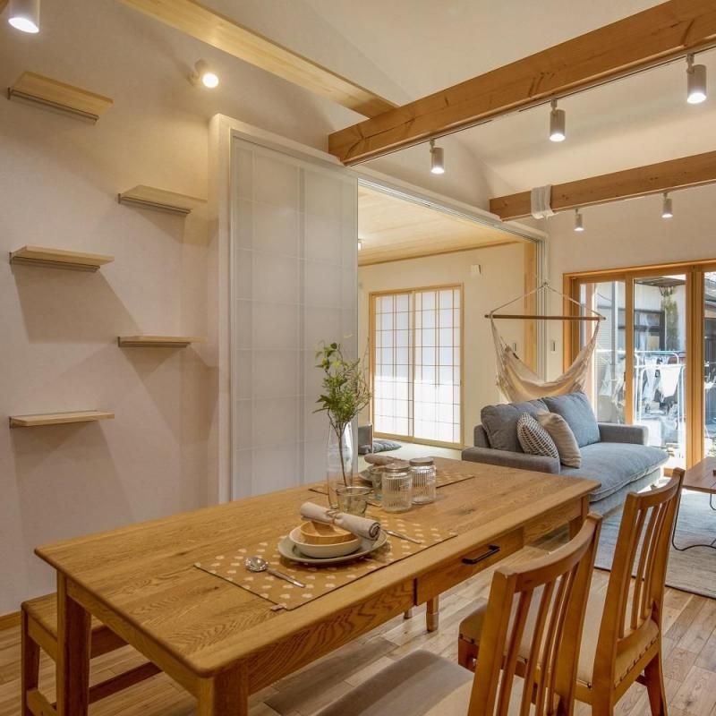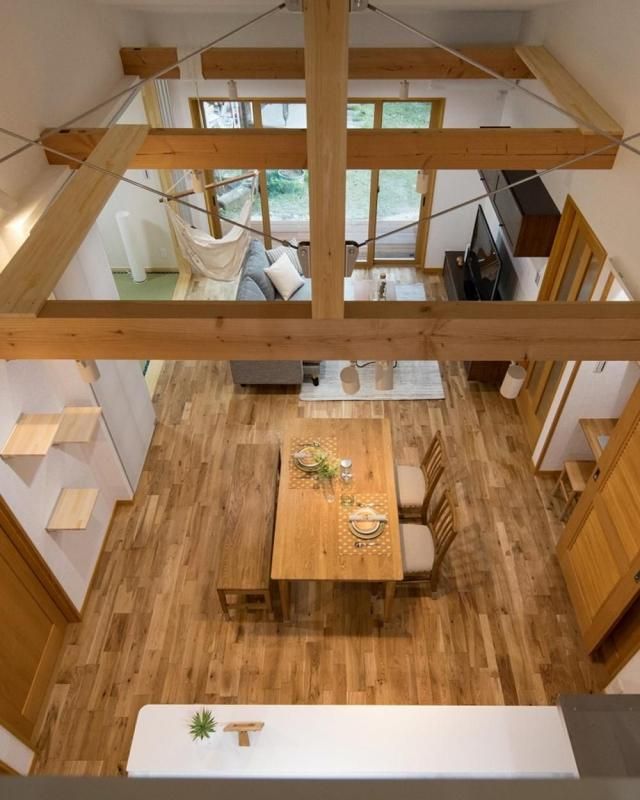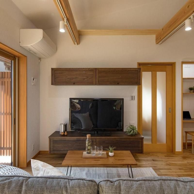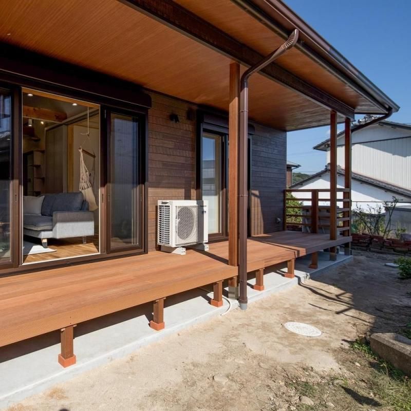 片流れ屋根が印象的な、ほぼ平屋の家。