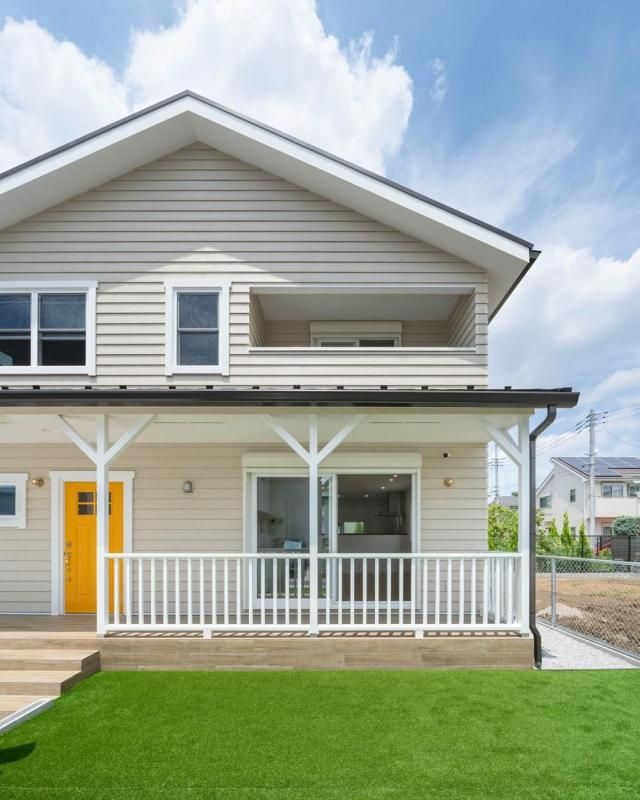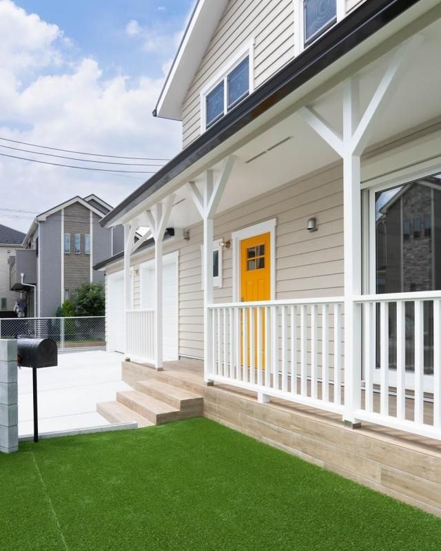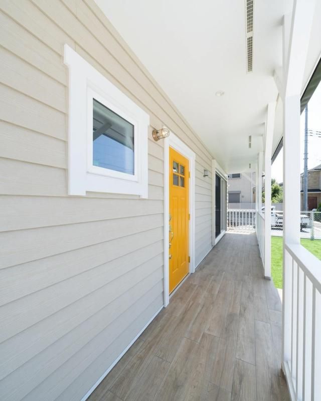 鮮やかな玄関ドアが、ぱっと目を惹きます。